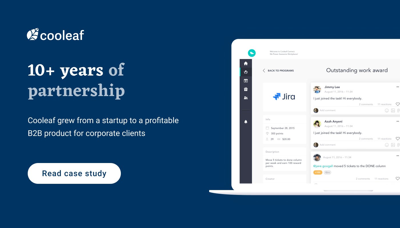 After celebrating a Monterail-Cooleaf 10-year anniversary of development collaboration, we are pleased to share the news and achievements Cooleaf has reached. Among others, this platform has gained awards, 60k users, private investments, and life-changing stories to tell. Currently, Cooleaf is working with a number of enterprise clients across the globe, including Citibank and the Turner Broadcasting System.