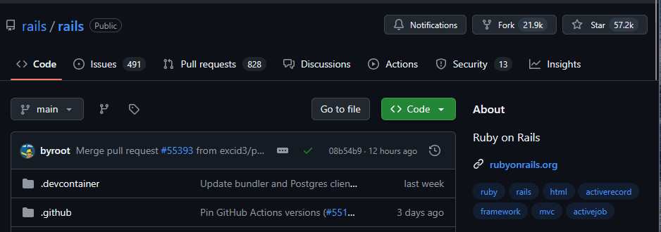 As of the time of writing, the Rails GitHub repository has over 57,000 stars and almost 22,000 forks, signaling a healthy and active ecosystem.
