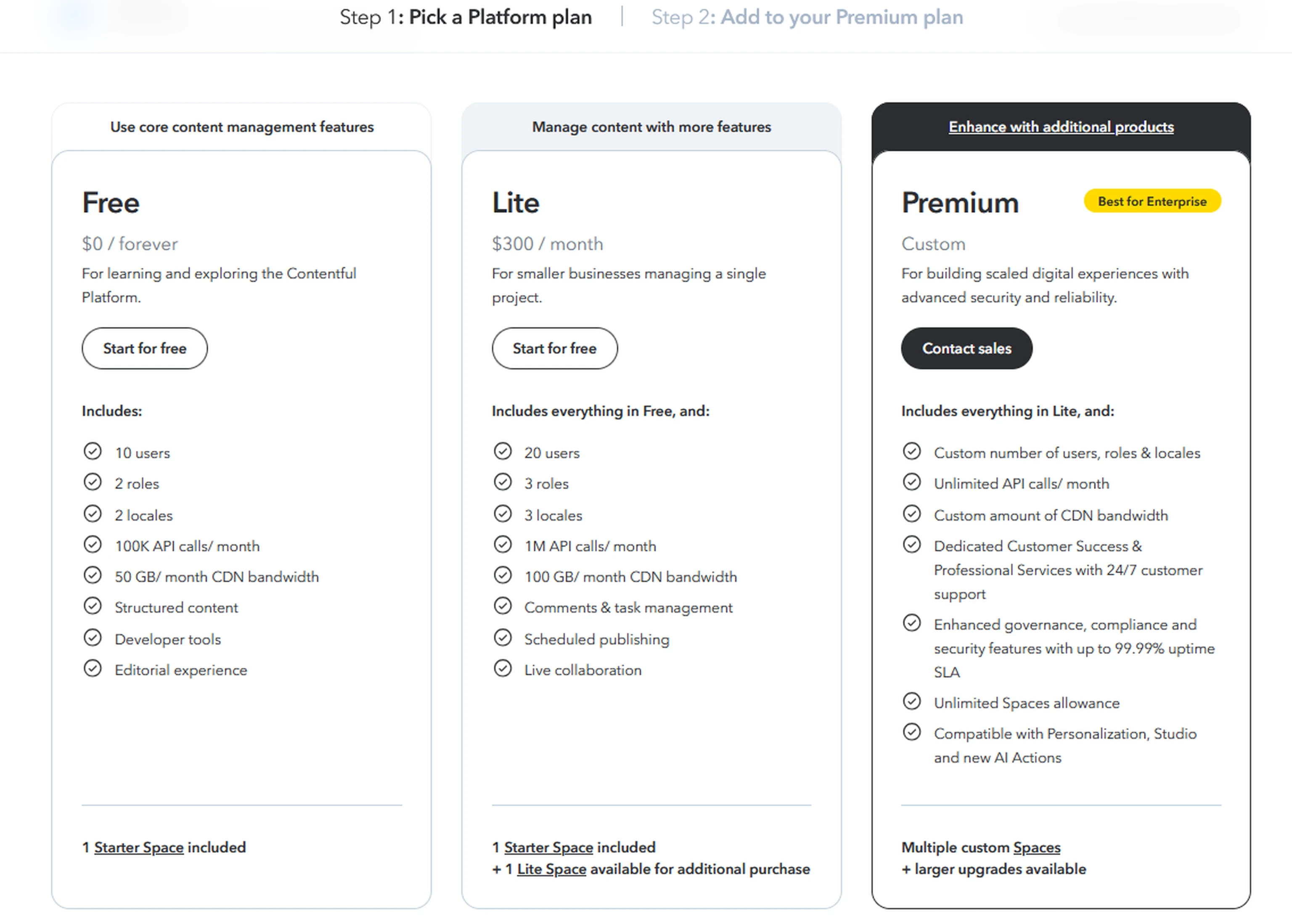 Contentful: Pricing structure